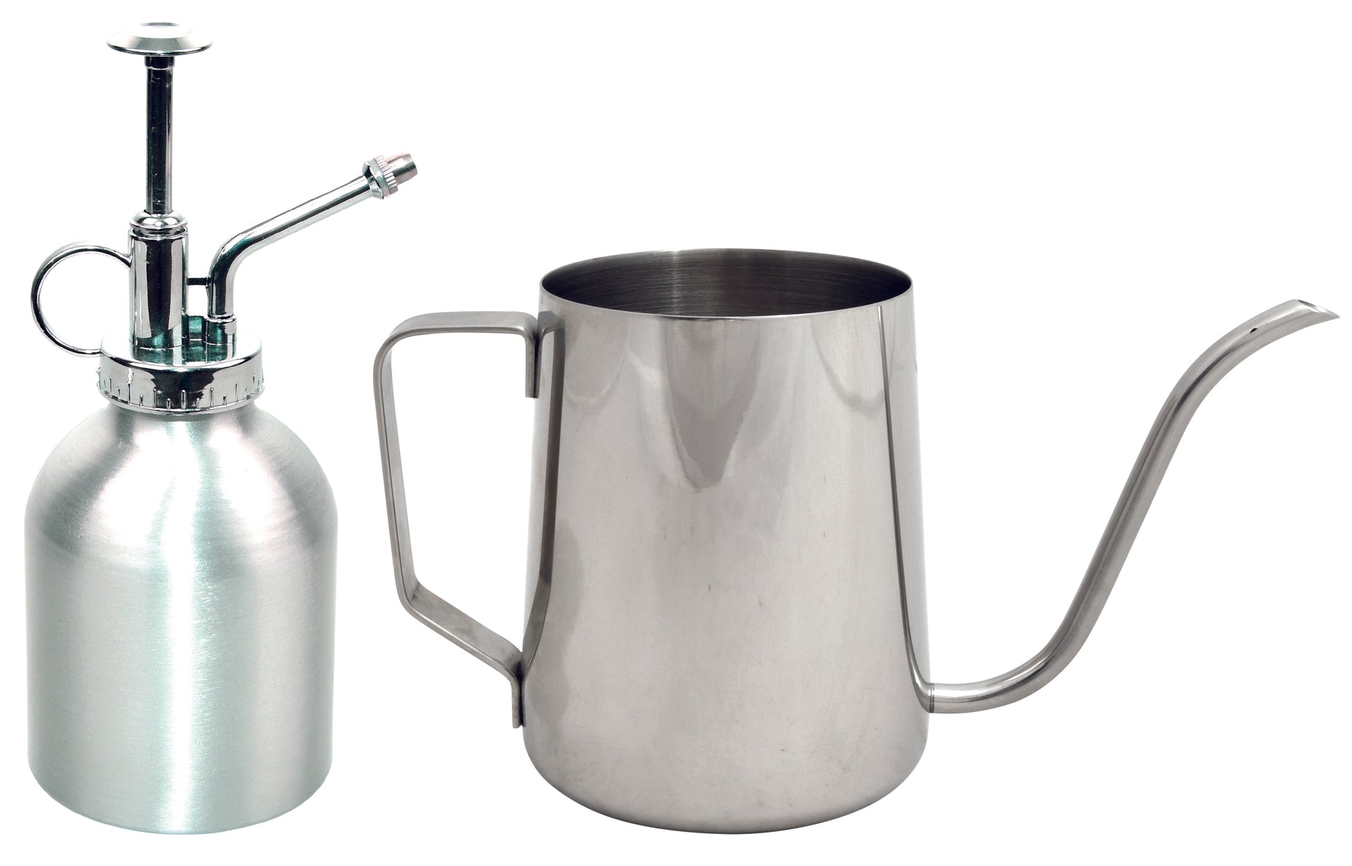 This set consists of a mister and watering can. The mister produces a fine, gentle mist. The watering can has a small spout for targeted watering.