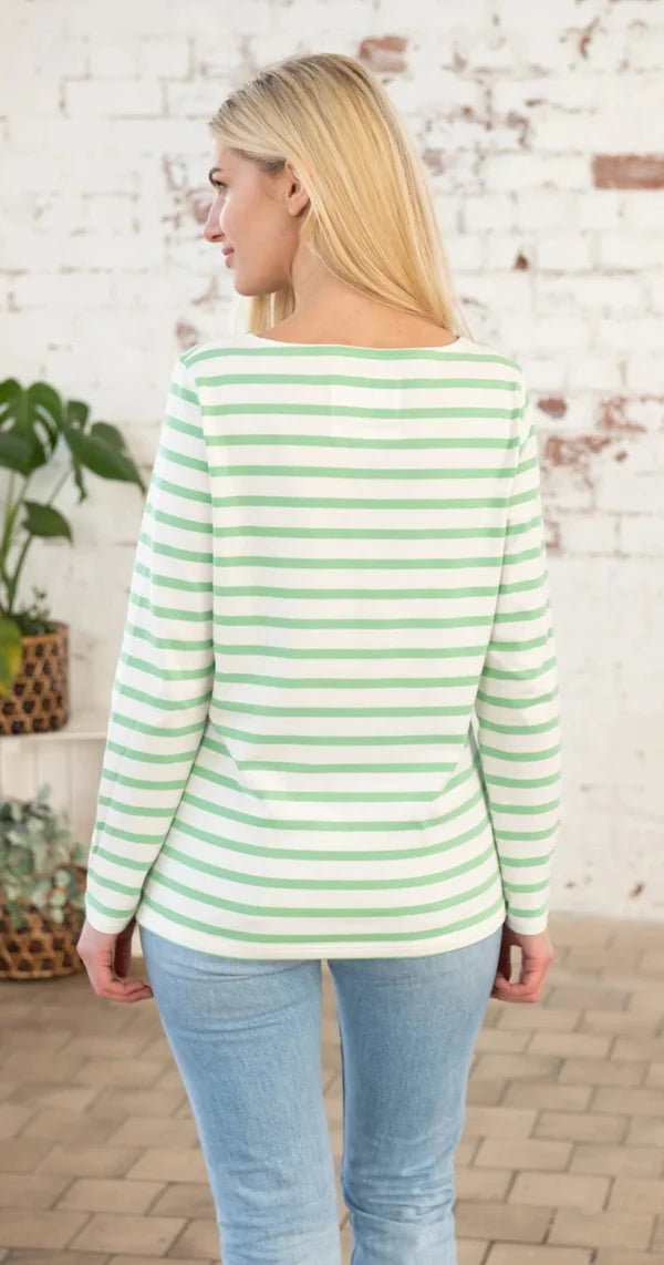 Elevate your style with this timeless causeway breton top. Crafted with a boat neck and stretchy cotton fabric, it offers comfort and sophistication for any occasion. A must-have addition to any wardrobe.