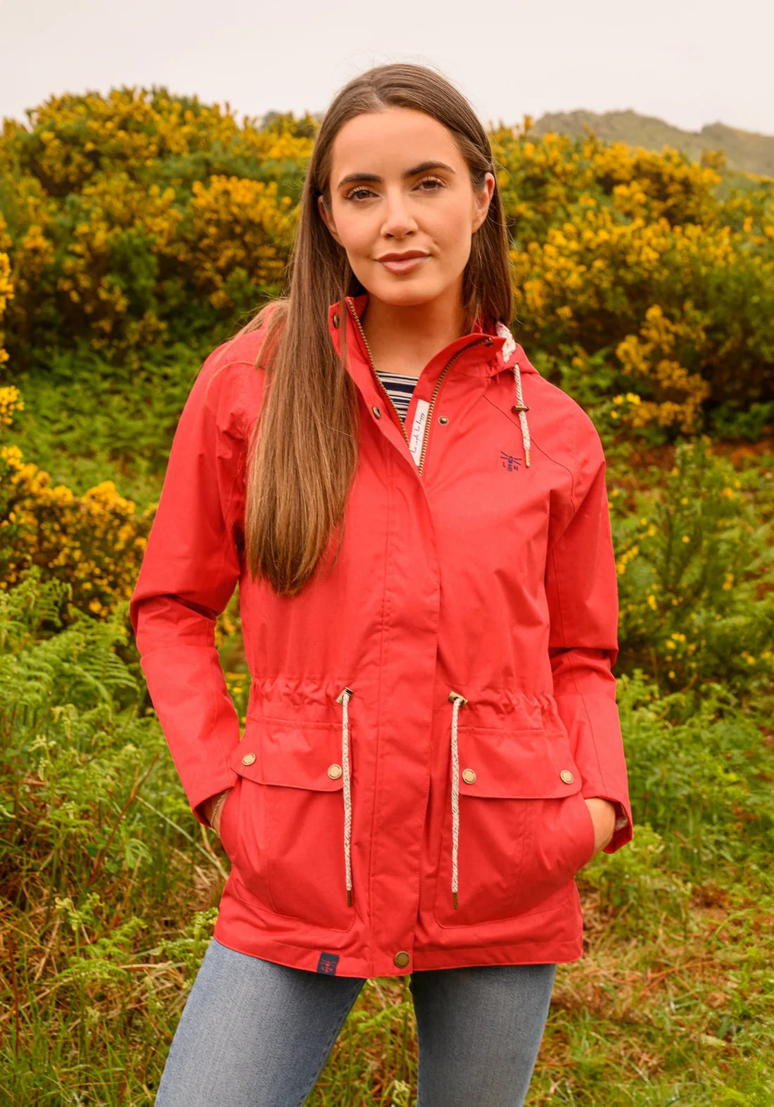 The Willow Jacket offers a highly waterproof solution that guarantees to keep you dry during rainy days. The jacket features a windproof fabric that provides protection against summer gales, allowing for comfortable coastal walks. Its breathable material ensures that overheating is not a concern, making it an ideal choice for outdoor activities, whilst the recycled outer fabric offers sustainability. The jacket is highly versatile, with two front pockets, an adjustable waist cord, and a Teflon coating that enhances practicality. The cotton blend lining adds a layer of softness, while turning back the cuffs reveals a floral contrast.